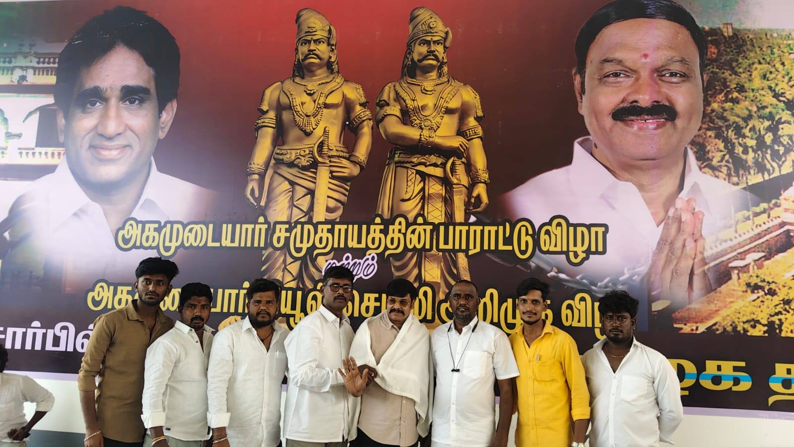 தமிழ் நாட்டின் அனைத்து அகமுடையார் சமுதாய மக்களின் சார்பாகவும் சமுதாய அமைப்புகளின் சார்பிலும் தமிழக தலைமை அகமுடையார் சங்கம் முன்னெடுப்பில் ஆந்திர மாநிலம் சித்தூரில் சிவகங்கைச் சீமையை ஆட்சி செய்த மாமன்னர் மருது சகோதரர்கள் முழு உருவ வெண்கல சிலை அமைத்தமைக்கு ஆந்திர மாநில முதலியார் சங்கத் தலைவா் திரு. புல்லட் சுரேஷ் அவர்களுக்கு பாராட்டு விழாவும் அகமுடையார் சமுதாய மக்களின் வளர்ச்சிக்காகவும் அகமுடையார் நியூஸ் செயலி (mobile application) அறிமுக விழவும் இன்று 7.2.2026 தஞ்சாவூரில் தொழிலதிபர் TKT முரளி அவர்களின் தலைமையில் மருது பாண்டியர் 7 ம் தலைமுறை வாரிசுதாரர் திரு ராமசாமி சேர்வை திரு.மலைச்சாமி, ஜெயமணி, துர்கா தேவன், வத்தனம் ராஜ், பாலமுருகன் அகமுடையார் ஆகியோர் முன்னிலையில் நடைபெற்றது.