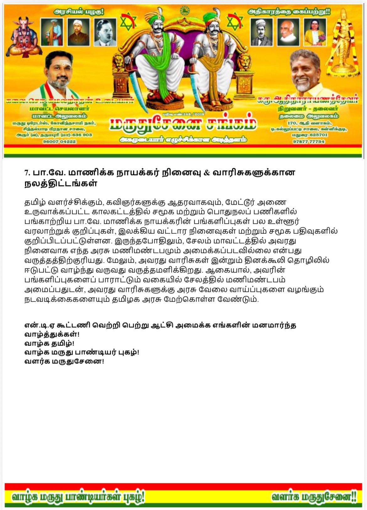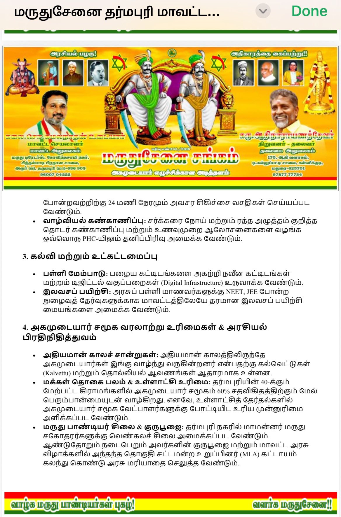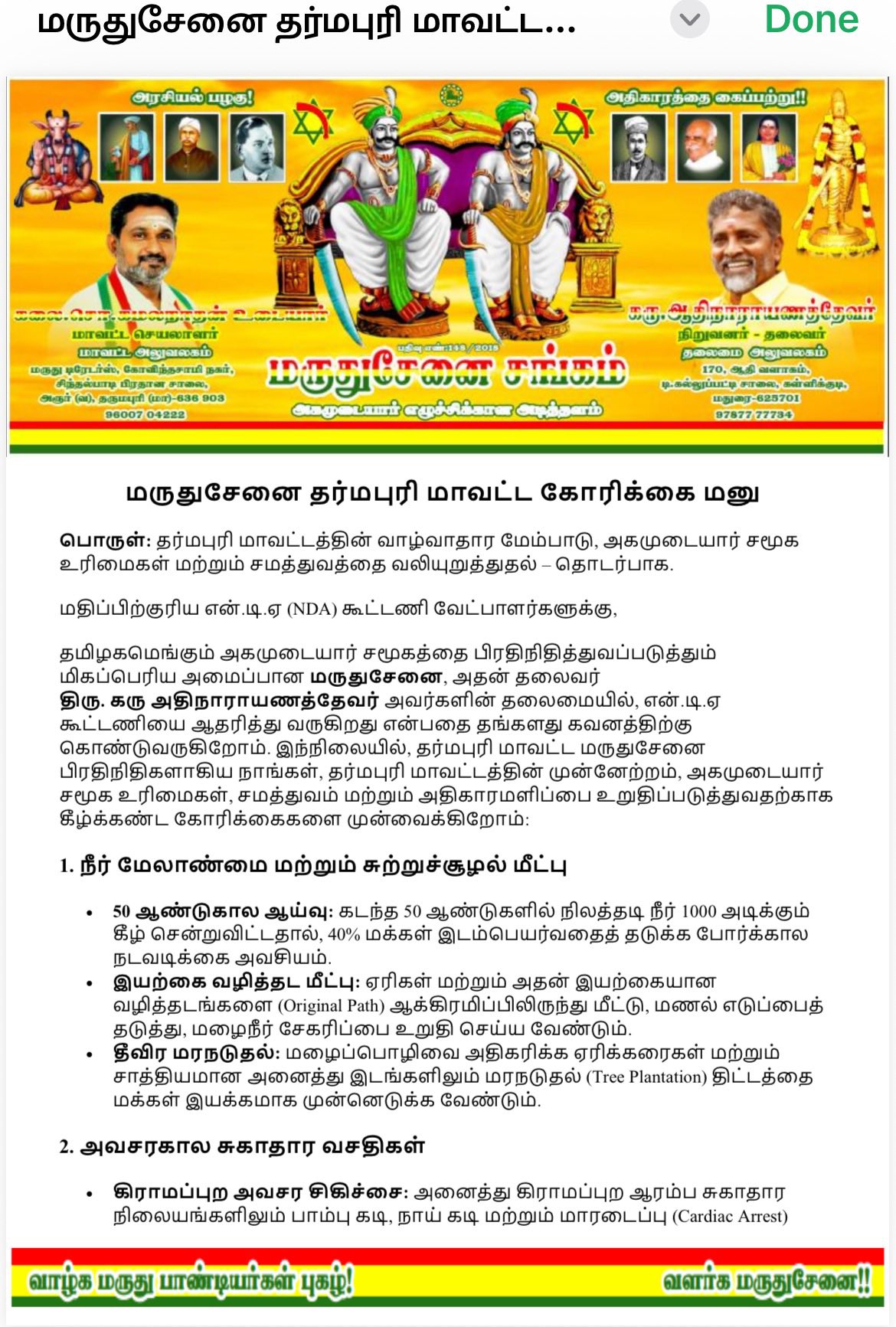🇧🇴🌱🥭🪷தர்மபுரி மாவட்ட மருதுசேனையின் சார்பில் தேசிய ஜனநாயக கூட்டணி வேட்பாளர்கள் இடத்தில் வைக்கப்பட்டுள்ள மாவட்ட நலன் மற்றும் அகமுடையர் சமுதாய நலன் சார்ந்த கோரிக்கைகள்!!
